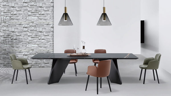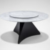 天板素材や脚部カラーの多彩なバリエーションが、幅広いニーズに応えます。さらに円形ダイニングテーブルにはターンテーブルを備え、プロダクトの実用性を高めています。