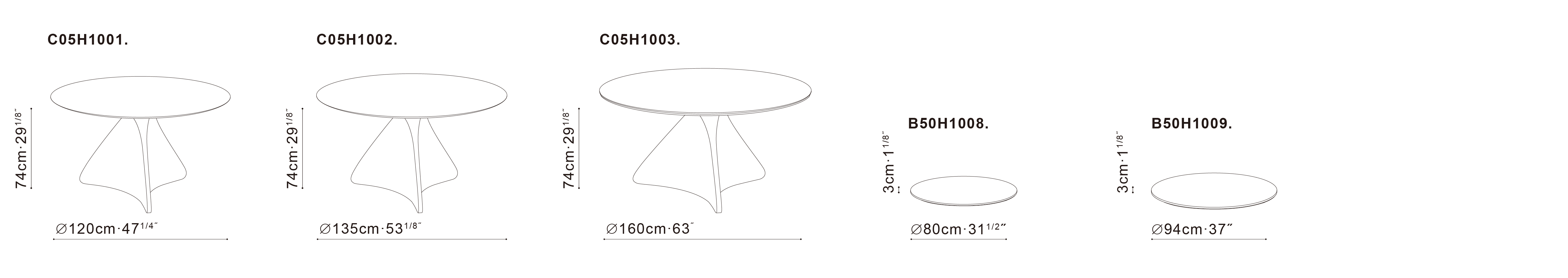 SPINシリーズには、ダイニングテーブルとローテーブルが含まれています。